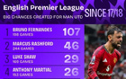 107次!自17/18赛季之后,B费是曼联在英超创造绝佳机会最多的球员