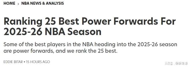 FW评新赛季大前锋排名:字母领跑浓眉第三,湖人先发四号位垫底