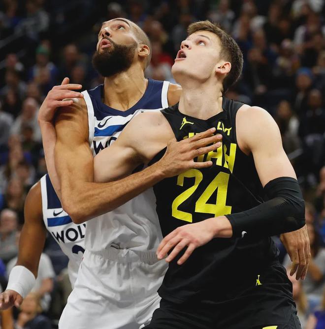 作为对比,上赛季戈贝尔在森林狼首发出战72场常规赛,场均出战33.2分钟,得到12分10.9篮板1.8助攻0.8抢断1.4盖帽,投篮命中率66.9%,罚球命中率67.4%。今年季后赛,戈贝尔场均仅得到7.9分8.6篮板0.7助攻1.2盖帽。