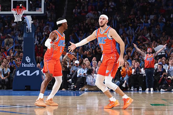 本场比赛中,雷霆的替补外线大闸亚历克斯-卡鲁索(Alex Caruso)的表现依然是非常突出的。卡鲁索全场出场15分16秒,投篮6中3,三分线外3中2,得到了8分2篮板3助攻5抢断的数据,还有3次失误和1次犯规,正负值则是达到了全场最高的+25。卡鲁索在进攻端还是没有什么太多的出手,不过他还是命中了两记三分,他也能够起到传球方面的作用,证明了自己还是能够在进攻端发挥出一些特点的。最关键的是,卡鲁索在防守端的表现算得上是可圈可点,他送出了大量的抢断,给对手制造了巨大的威胁。卡鲁索对于比赛的影响力真是太大了,他的出场时间其实并不多,但是他的正负值却达到了全场最高的+25,这也足以说明他对于球队的正面影响有多大。