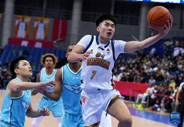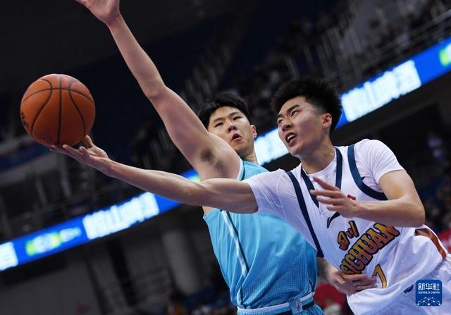 12月15日,四川丰谷酒业队球员段睿骐(右一)在比赛中上篮。新华社记者 李紫恒 摄