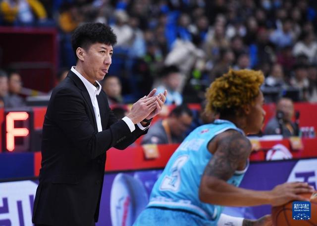 12月15日,四川丰谷酒业队主教练韩硕(左)在比赛中鼓励球员。新华社记者 李紫恒 摄