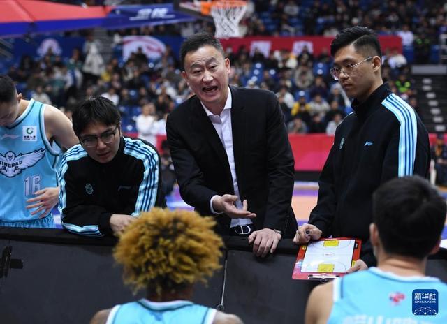 12月15日,青岛崂山啤酒队主教练刘维伟(中)在比赛间隙向球员布置战术。新华社记者 李紫恒 摄