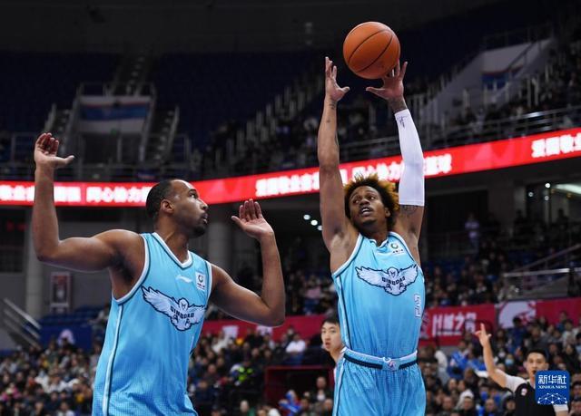 12月15日,四川丰谷酒业队球员刘冠杉(右)在比赛中传球。新华社记者 李紫恒 摄