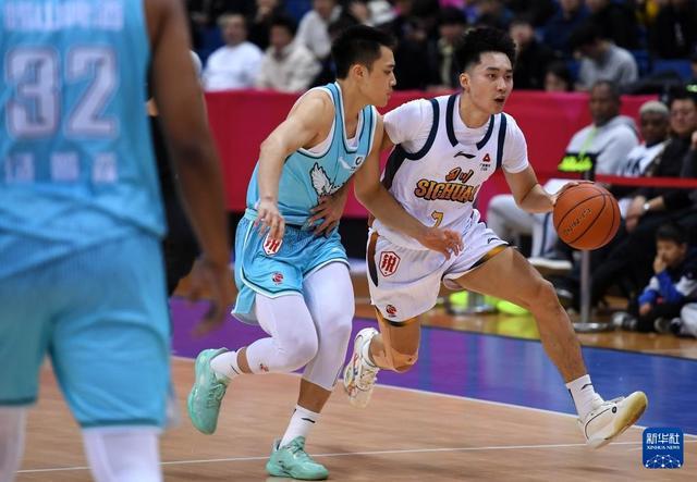 12月15日,四川丰谷酒业队球员段睿骐(左)在比赛中持球进攻。新华社记者 李紫恒 摄