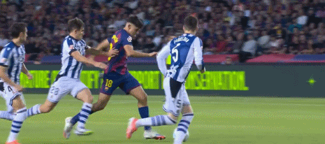 第46分钟,巴萨下半场换人,奥尔莫替补登场