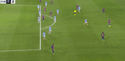 再过2分钟,塞尔塔中路反击又有机会,尤特格拉禁区弧顶前大力兜射,门将什琴斯尼奋力将球托出底线。第36分钟,巴萨全线压上,曼联旧将拉什福德45度角处接球,晃开防守后精妙过顶兜传门前,莱万反越位成功突到门线前凌空将球一挡,皮球从门将拉杜胯下穿过弹入网窝,莱万梅开二度,巴萨2:1再次取得领先。有意思的是巴萨这次领先也没有多久,6分钟后,塞尔塔又是中后场反击,明格萨右路过顶长传往前面送,尤特格拉插上接球下底回传中路,后排跟进的伊格莱西亚斯禁区弧顶处迎球大力推射,皮球应声入网,塞尔塔2:2再次扳平比分。